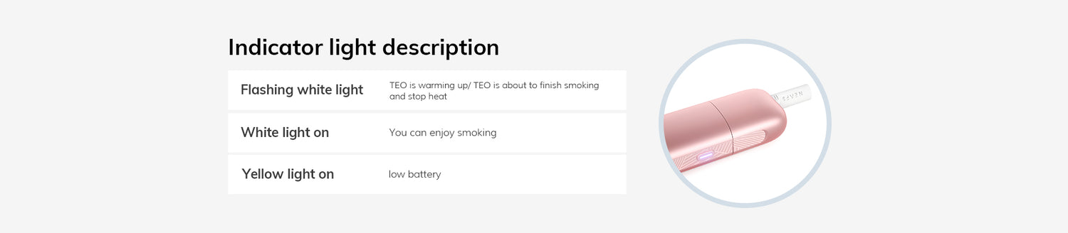 TEO will automatically stop heating after 5 minutes. if you need continue heating, pressing and holding the power button for 2 seconds. You will feel a small vibration to confirm heating has begun.