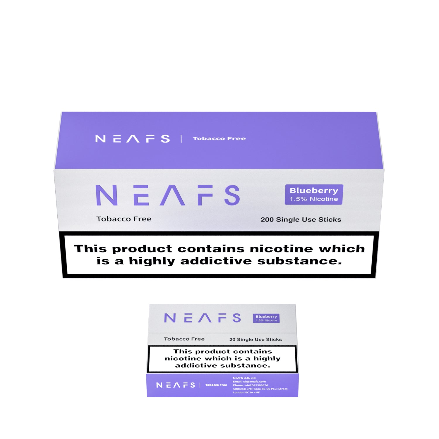 NEAFS Blueberry are tobacco free sticks that offer excellent taste packed with our premium tea blend, for an amazing experience as they’re gently heated. Each stick offers the same length as smoking a conventional cigarette, without the need for burning. Truly a guilt-free experience, without the worry of harmful chemicals or any off-taste.